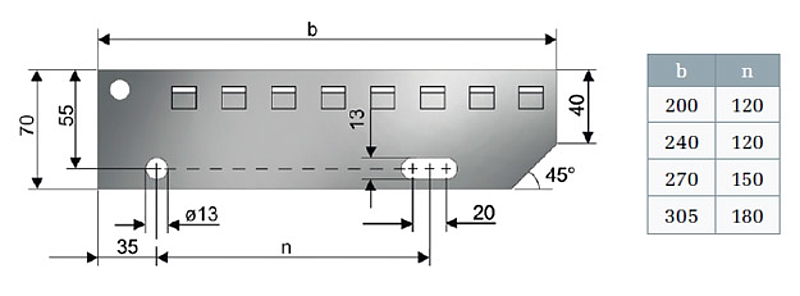 Voor toepassing van roosters in traptreden is een schetsplaat bij traptreden en perfotreden onontbeerlijk. Het bevestigingsgat en sleufgat zorgen ervoor dat elk soort trede hierdoor makkelijk bevestigd kan worden aan een constructie. De schetsplaten voldoen aan DIN-24531 en zijn gemaakt uit een metaalplaat van 70 x 3 mm.